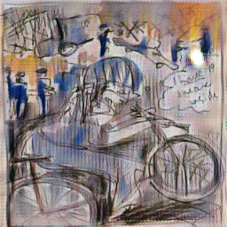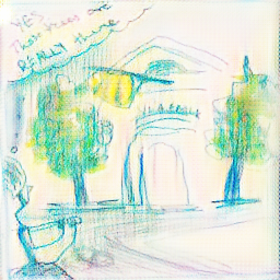 These were made with Cycle GANs that has been fed my landscape sketches and comics (unpaired image translation). The main difference between the two is the working procedure and time that went into drawing them: while the landscape drawings have been made slowly (and often in stages such as onsite sketch, then later on colouring perhaps days or weeks later, then "special effects" such as ink splashes etc.), the comics are made on a timer of 3-4 minutes (sometimes a few minutes more for colouring) but usually in one sitting, spontaneous and without much thought. There is a stylistic difference by consequence. The landscape sketches are made on location and at times from photos, while the comics are made entirely from memory. Thus, we have merged two very different ways of working in this project.