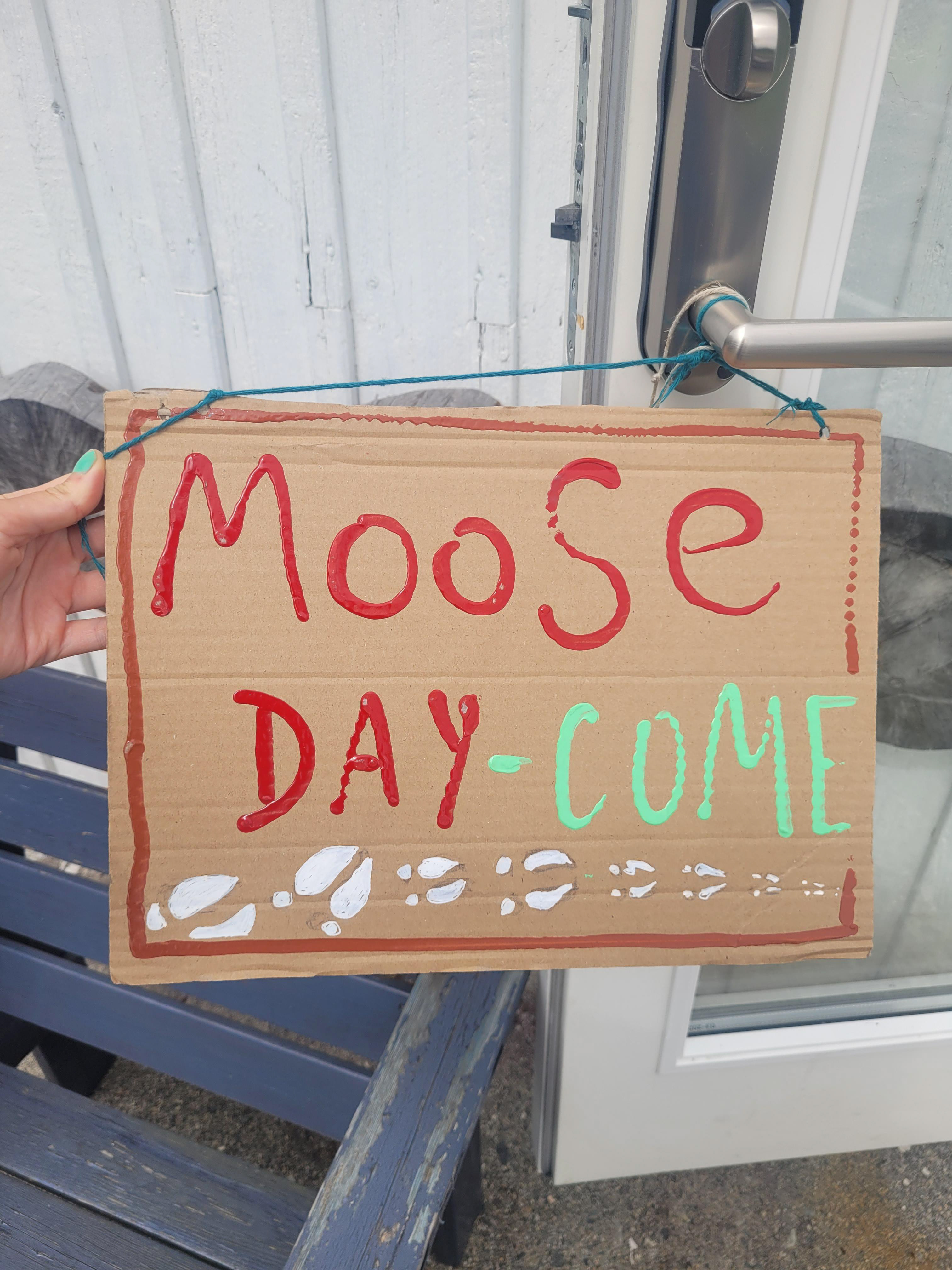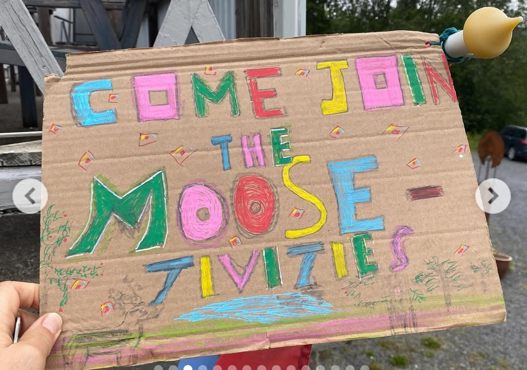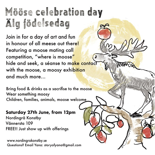 The day features lots of activities including food and drink sacrifice on the altar of moose, moose mating call competition, “where is moose” hide and seek (with real hand-picked northern moose poo), a séance to try and make contact with the moose, drawing moose into existence with pens and pencils, dancing, fortune telling etc. etc.